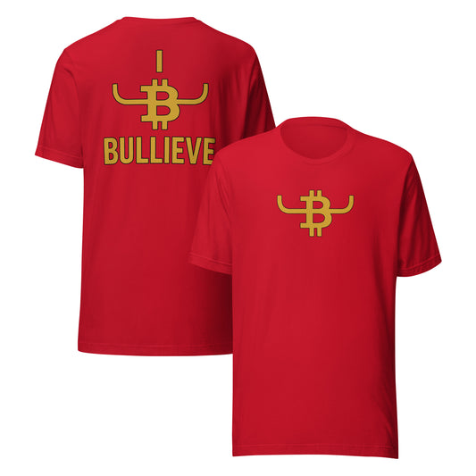 I BULLIEVE with BULL BITCOIN logo Unisex SS t-shirt